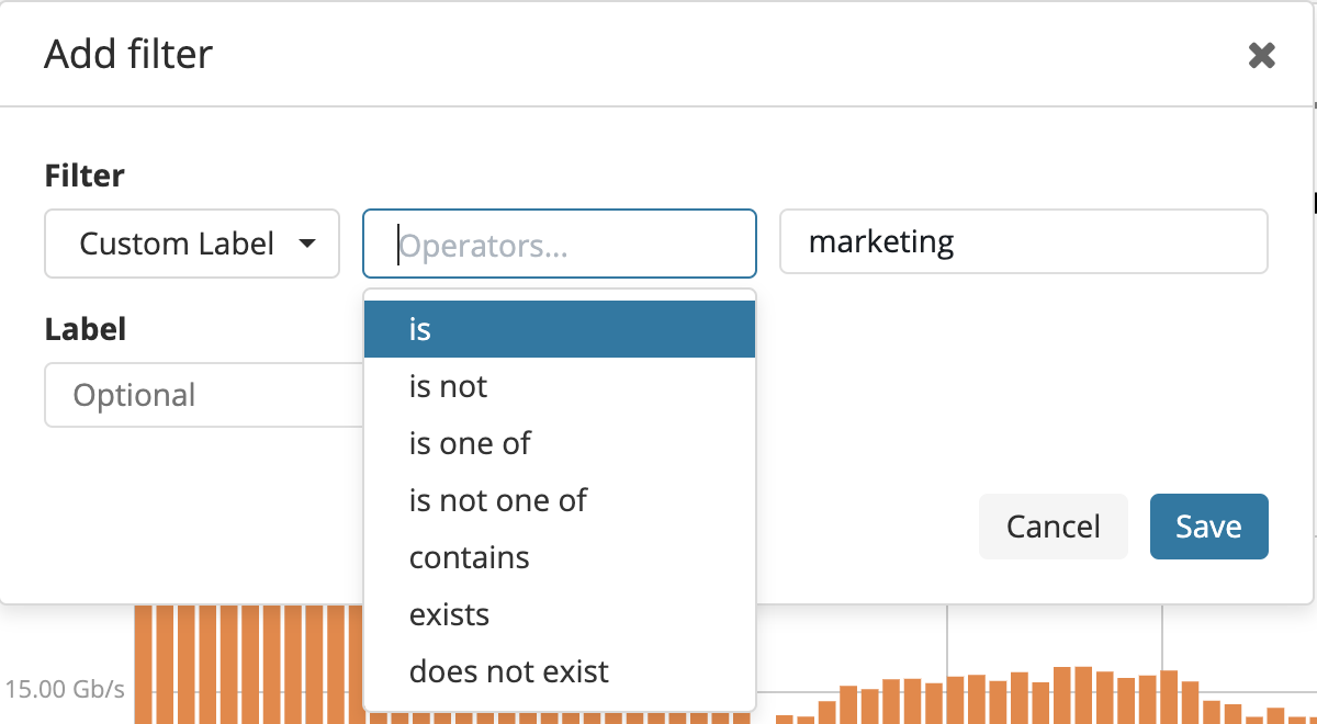 - Choose the which kind of filter you want to use and the write the value you wish to match,